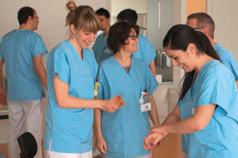 Pflege-Studierende des Berner Bildungszentrums Pflege und Medizin-Studierende der Universität Bern im ersten Ausbildungsjahr absolvieren erstmals eine gemeinsame Unterrichtssequenz. Primäres Ziel ist, das Verständnis für die andere Berufsgruppe in einer möglichst frühen Phase zu fördern.